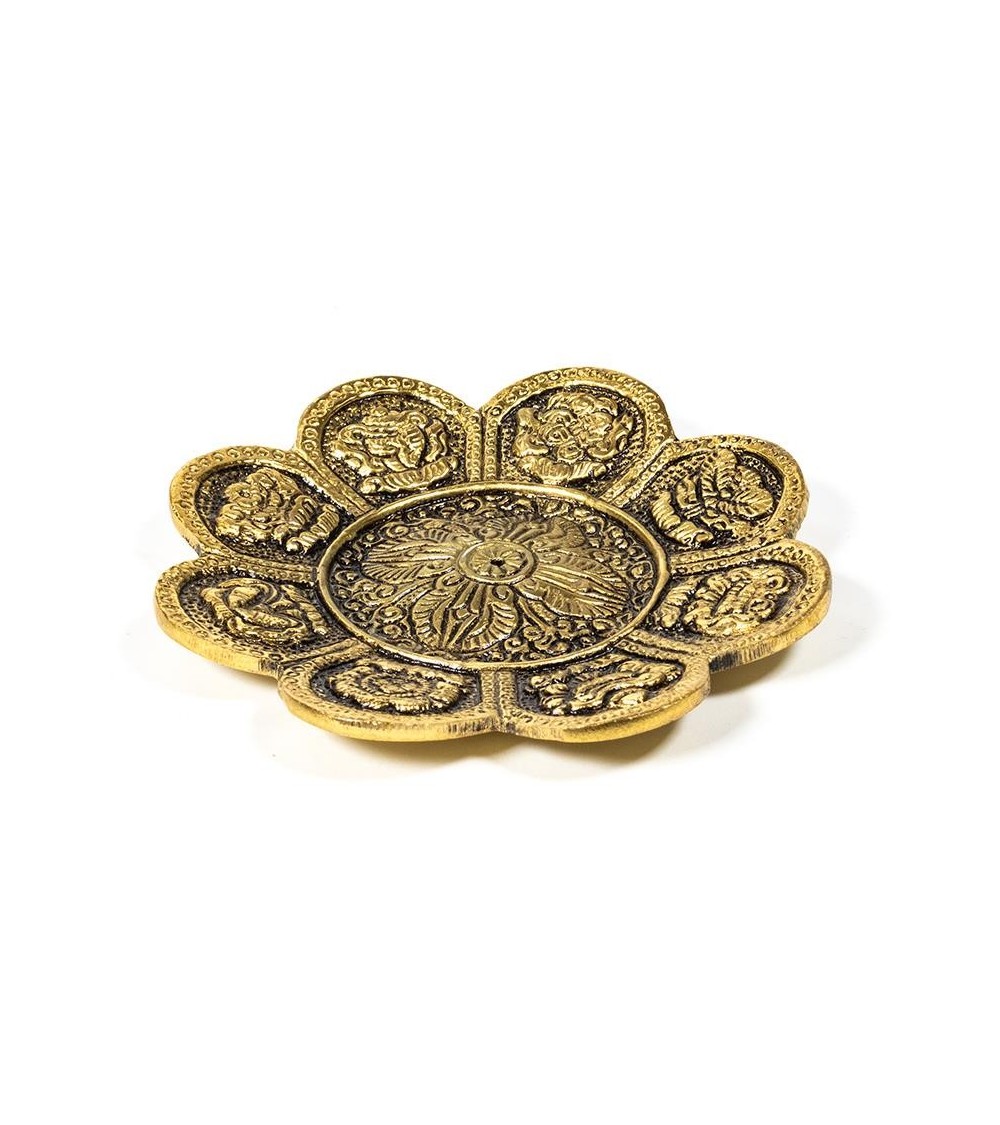 Transformez votre espace en un espace apaisant avec notre porte-encens richement décoré des 8 signes bouddhistes porteurs de chance.